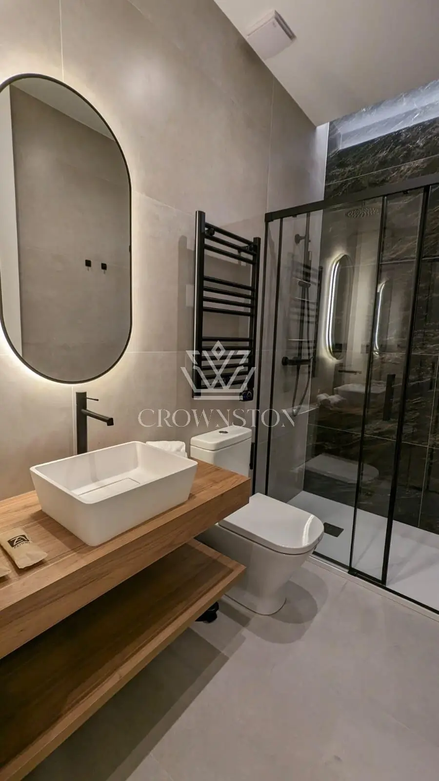 La vivienda ofrece un salón-comedor con cocina abierta, dos dormitorios y dos baños completos, configurados mediante una distribución equilibrada que potencia la sensación de amplitud y confort. La selección de materiales, las texturas y la iluminación han sido estudiadas para transmitir calidez, diseño y coherencia estética en cada rincón.
