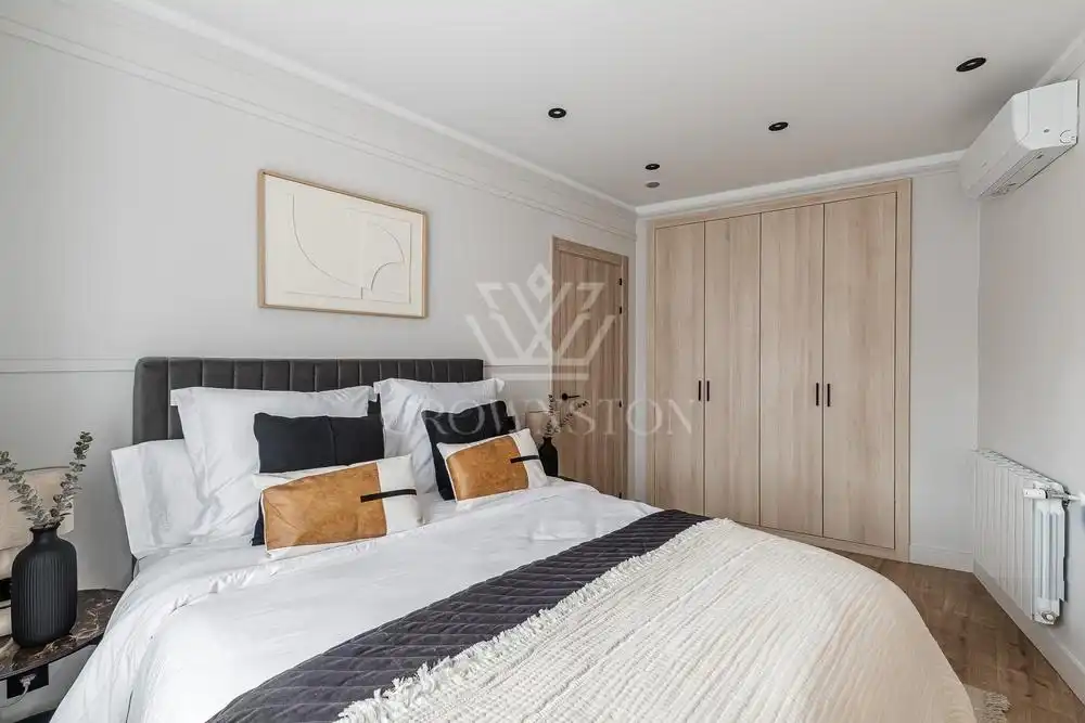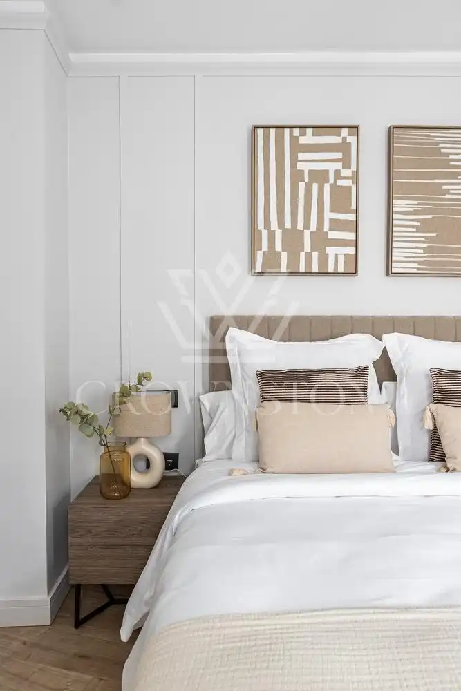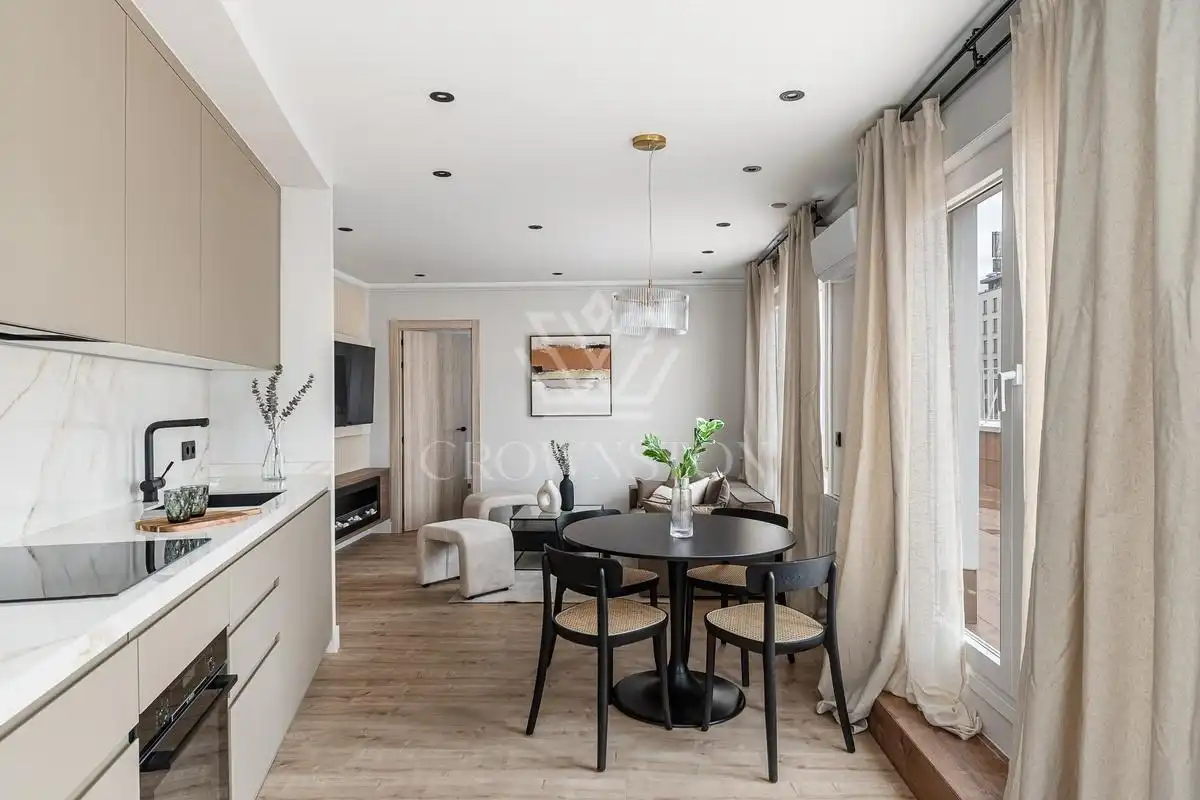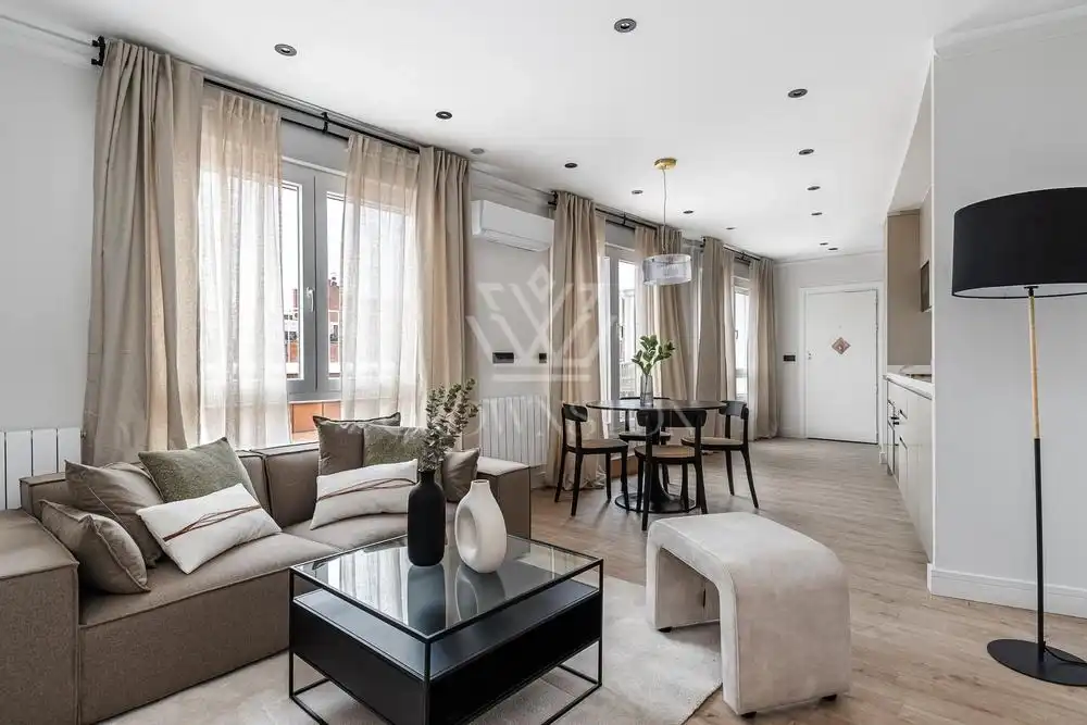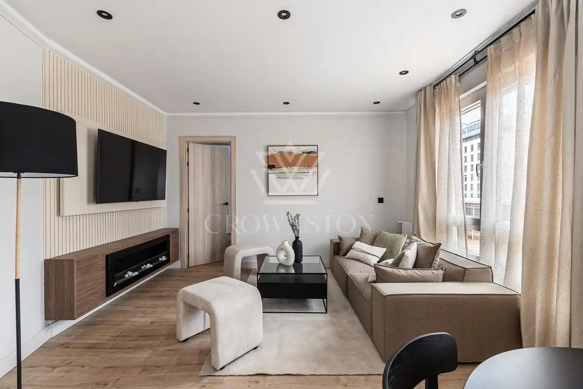 Crownston presenta esta distinguida vivienda totalmente reformada y amueblada, con una superficie de 96 m², situada en una quinta planta con ascensor en el consolidado y exclusivo barrio de Ibiza, dentro del emblemático distrito de Retiro, calle Lope de Rueda. Se trata de una propiedad que aúna elegancia, funcionalidad y una cuidada estética contemporánea, pensada para ofrecer una experiencia residencial cómoda y sofisticada.