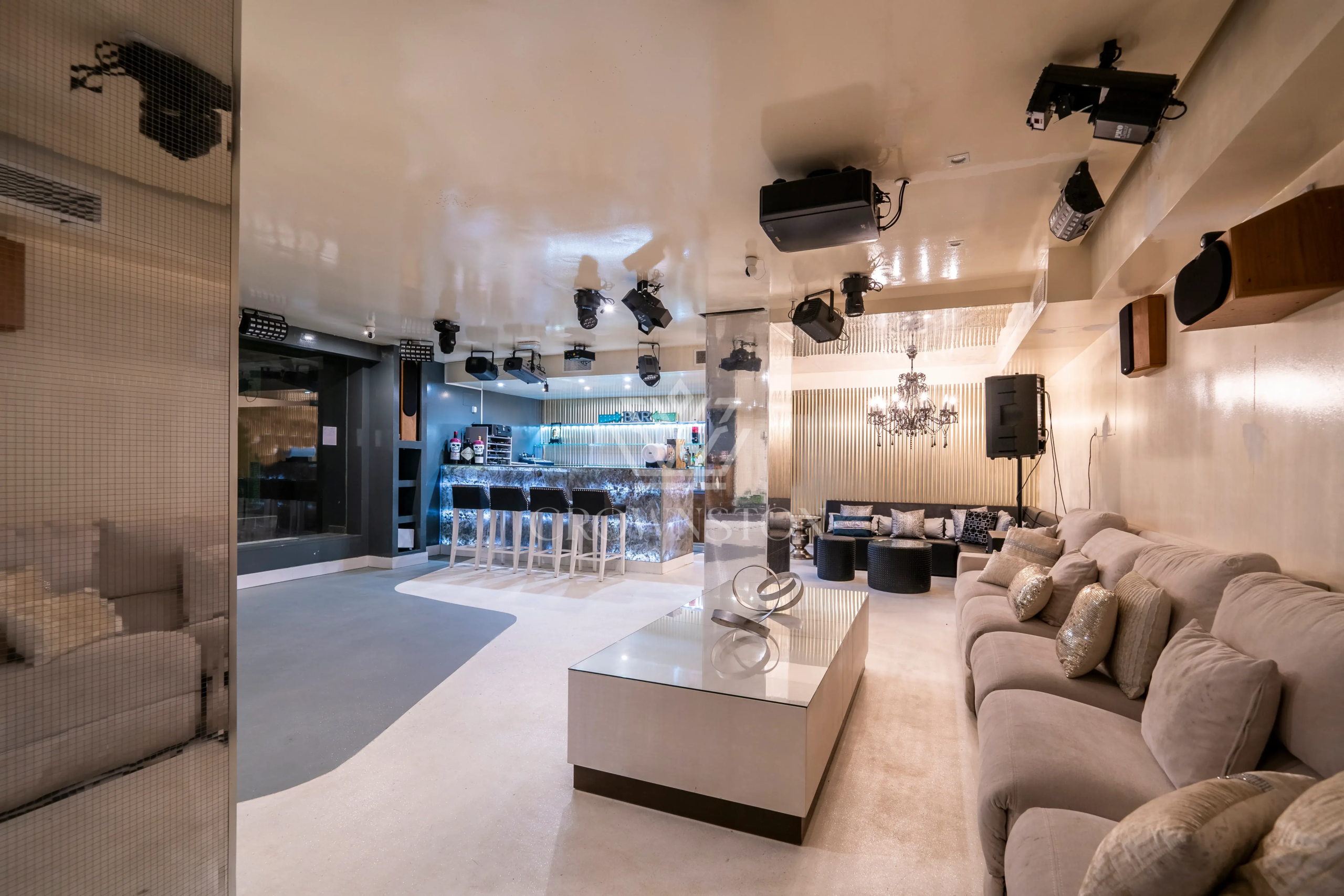 El nivel semisótano está diseñado para el confort y la funcionalidad: dos dormitorios con baños completos, un salón polivalente de más de 40 m², lavadero, armarios empotrados y un trastero. Toda la pared de esta planta está acristalada, permitiendo la entrada de luz natural y ofreciendo vistas directas a la piscina interior. Descendiendo a la planta sótano, la propiedad despliega su faceta más excepcional: una piscina climatizada iluminada con lámparas italianas LED, sistema domótico de última generación, baño turco y una sala de fiestas insonorizada completamente equipada con escenario, luces, sistema de sonido, karaoke y paredes transparentes que permiten ver la piscina desde el interior. Esta planta se completa con dos aseos adicionales, un gimnasio totalmente equipado, una despensa y un segundo trastero.