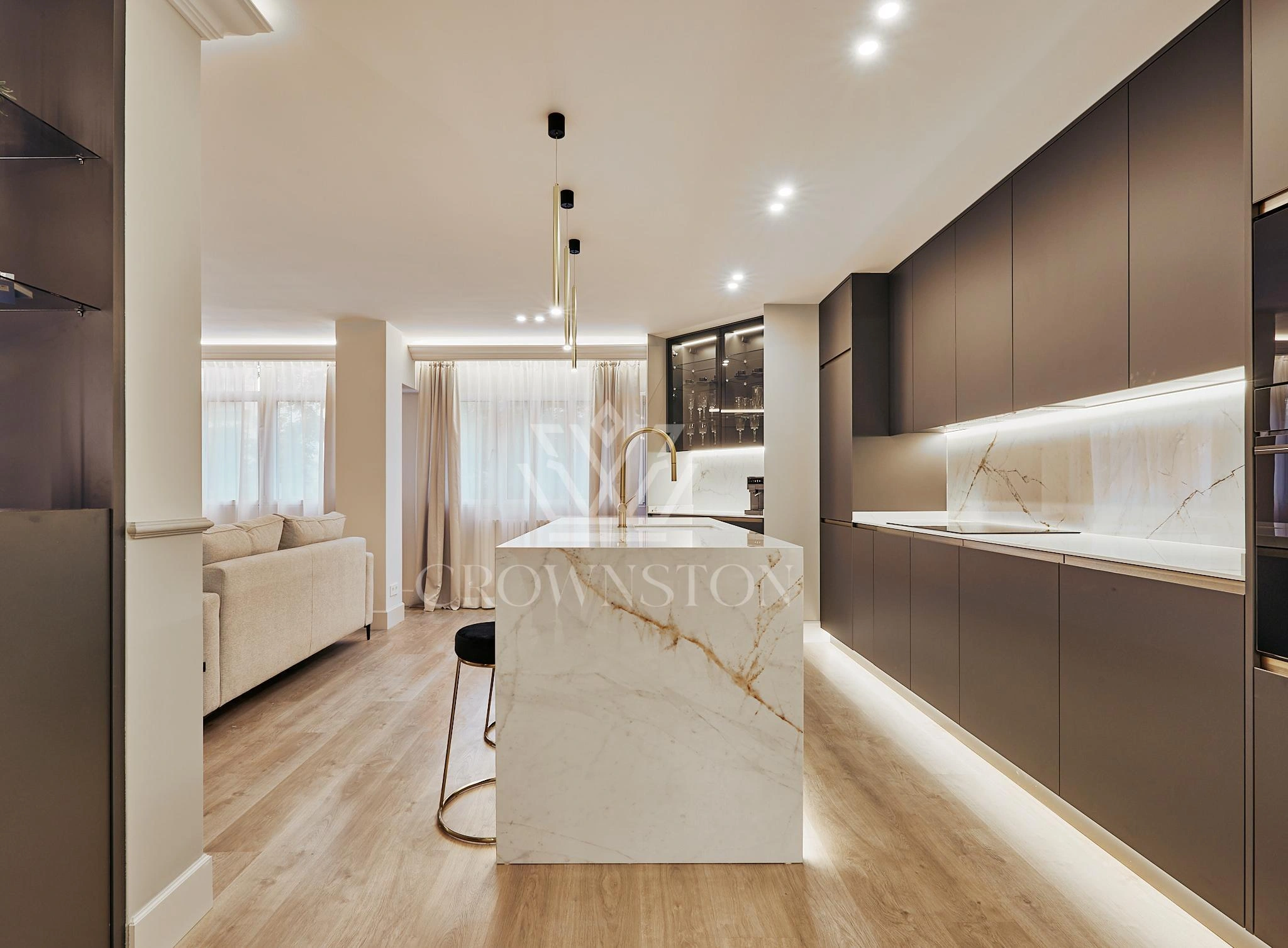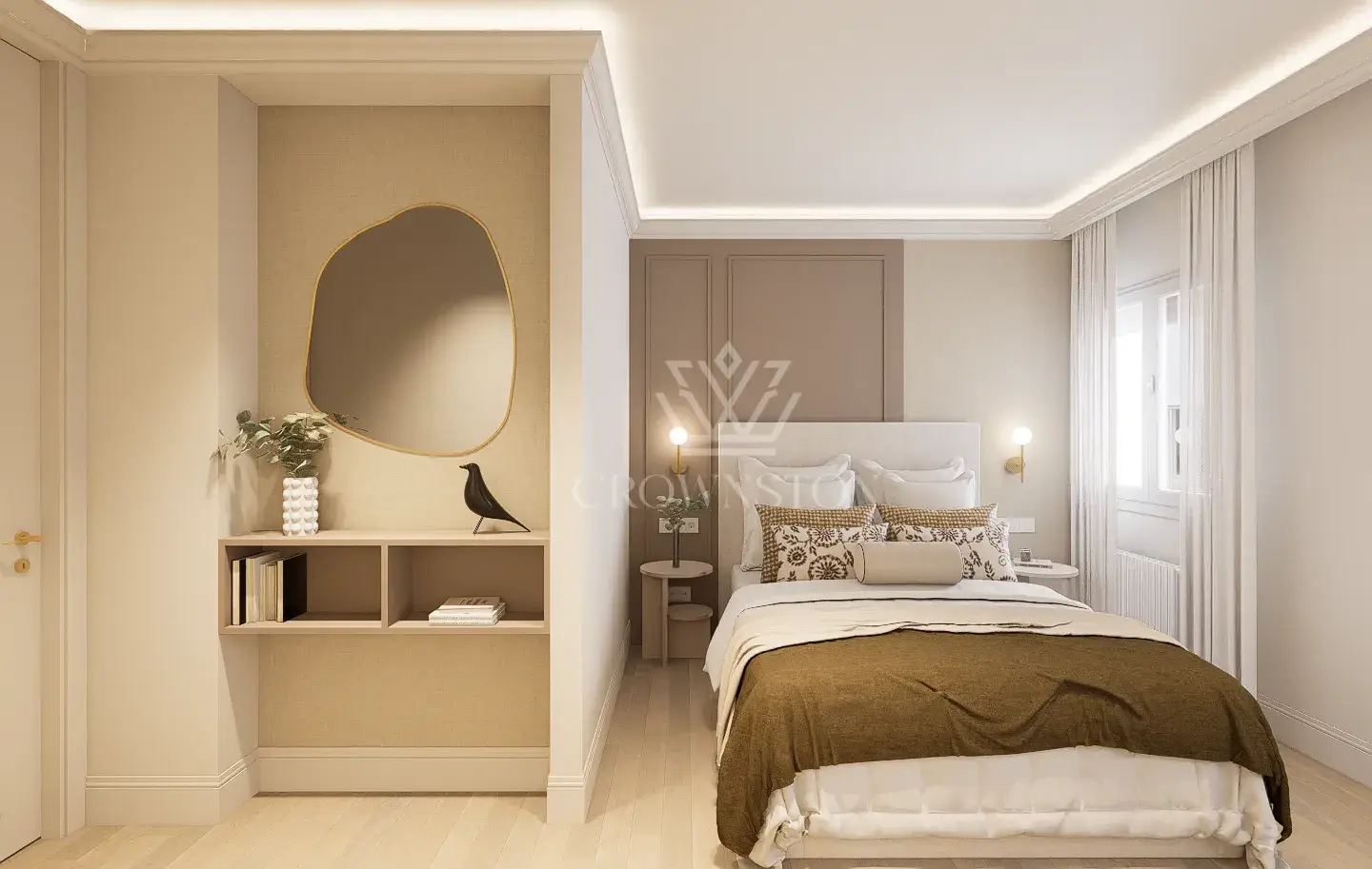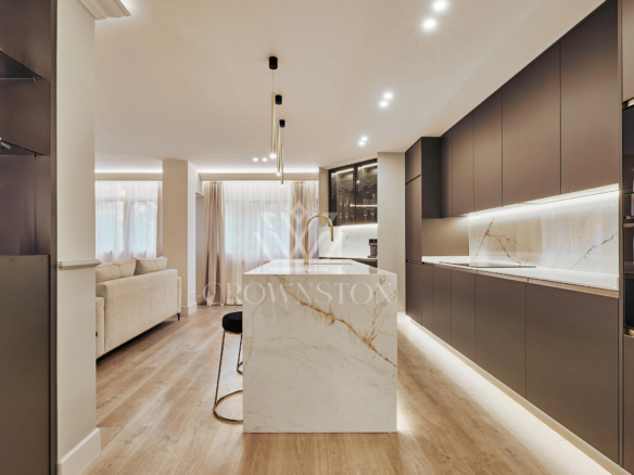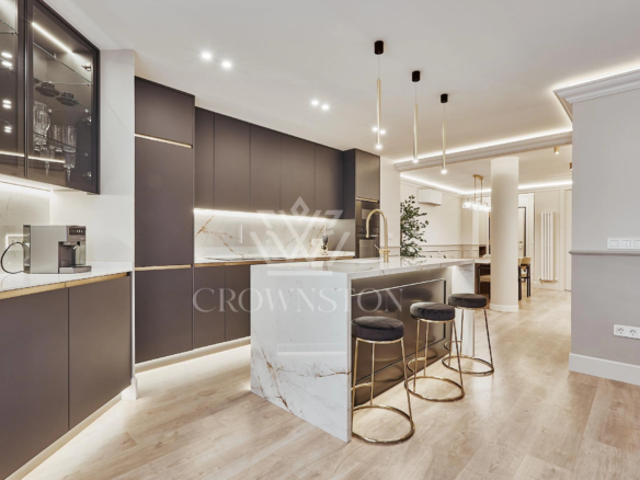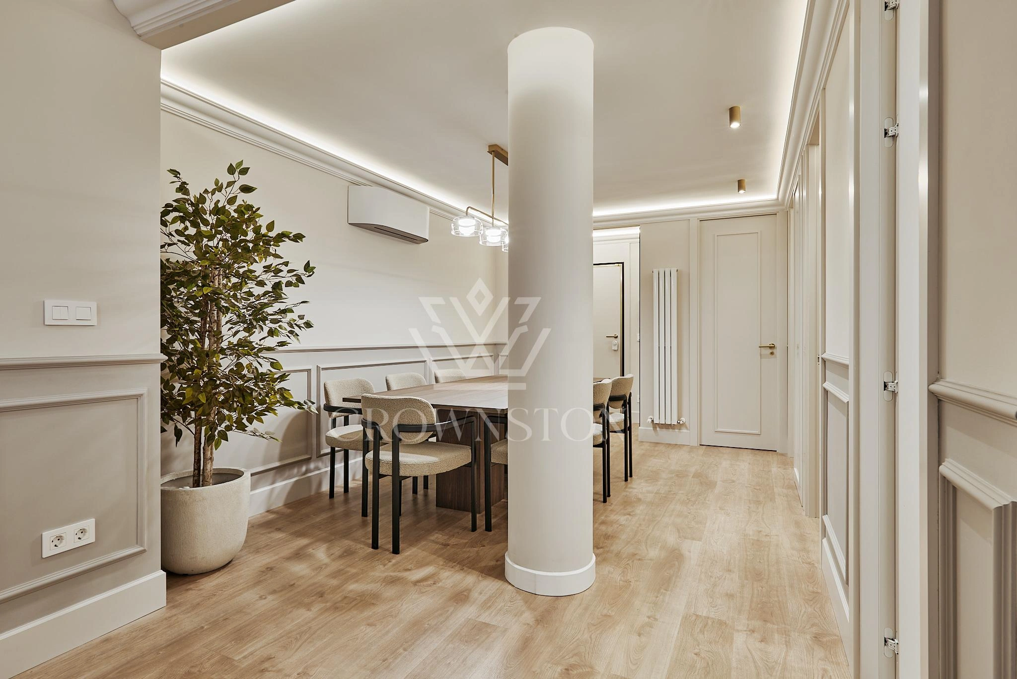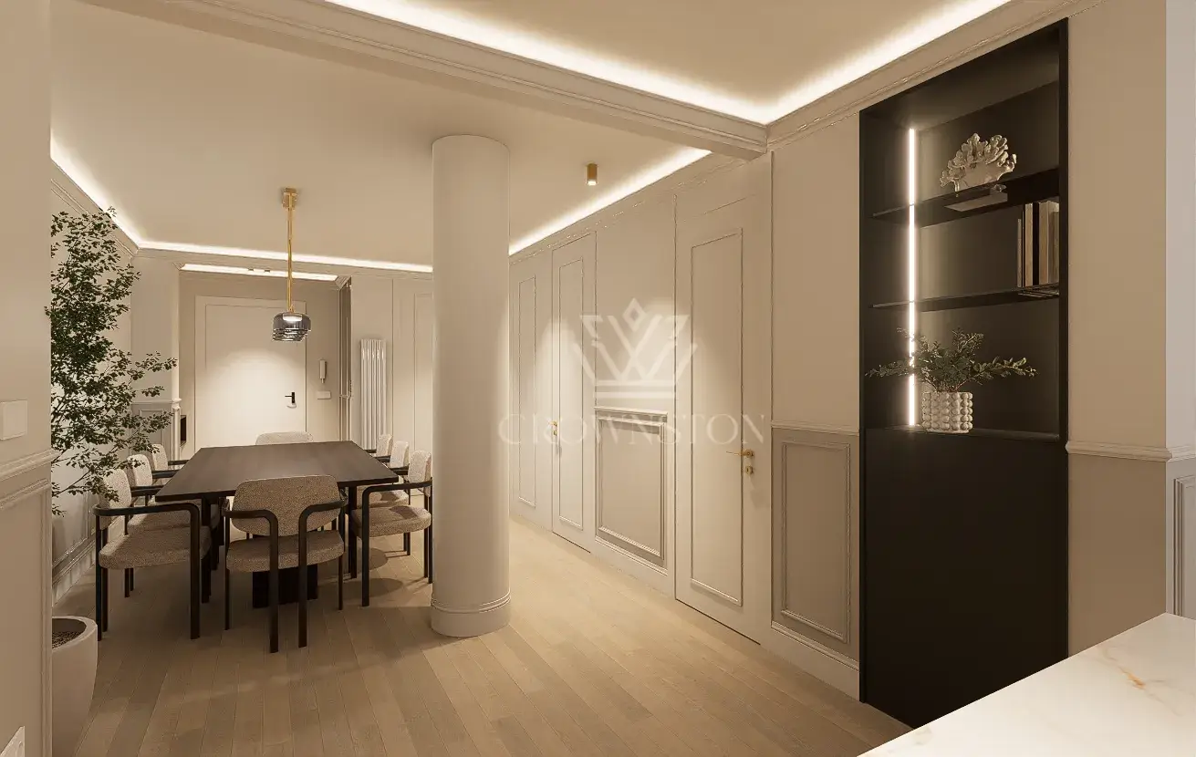Crownston presenta esta exclusiva vivienda exterior en proceso de reforma, ubicada en la primera planta de un edificio señorial con ascensor construido en 1969. Con 123 m² construidos, esta propiedad ha sido concebida para ofrecer una experiencia residencial donde la elegancia clásica se funde con el confort contemporáneo.