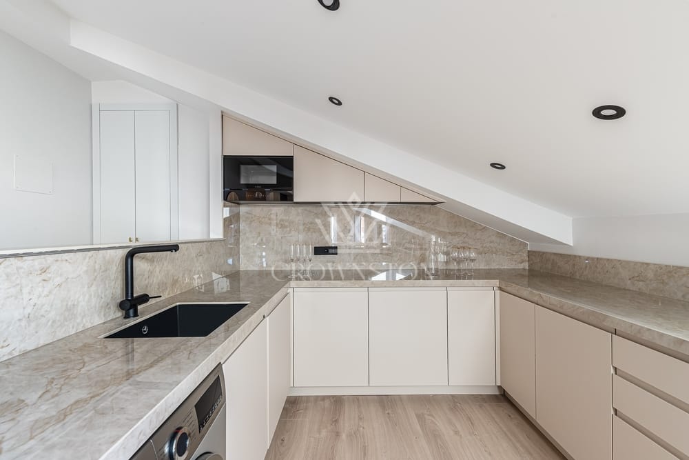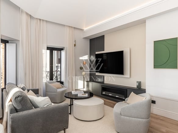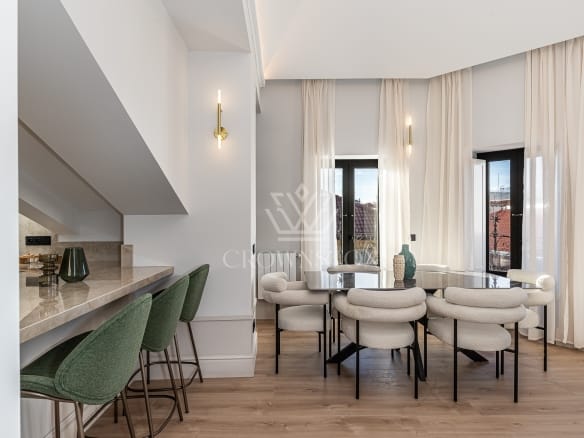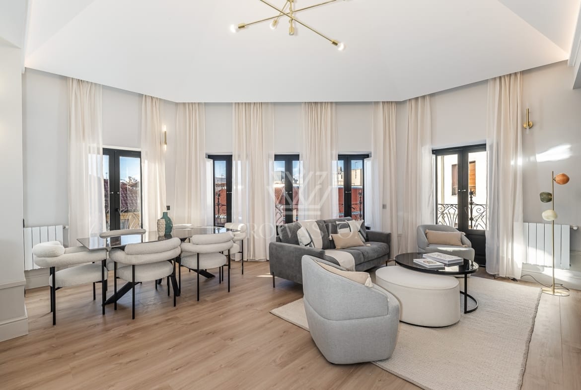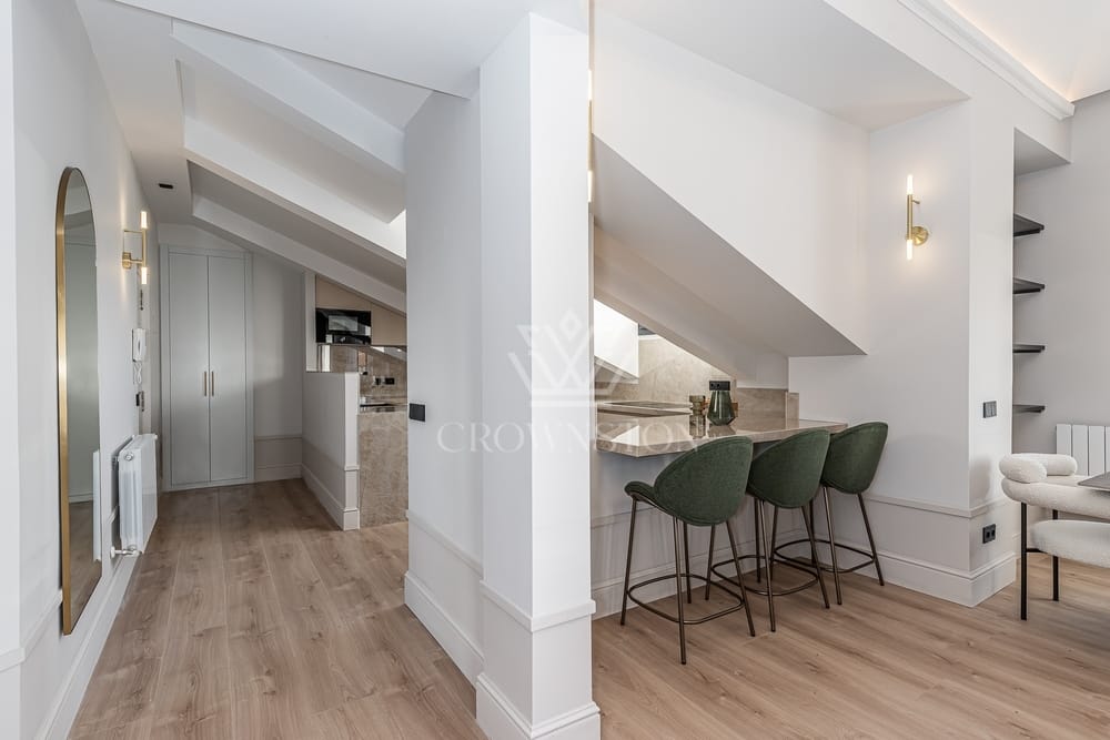 Crownston presenta este exclusivo ático completamente reformado, situado en la quinta planta de un edificio con ascensor, en el histórico barrio de Cortes, en pleno distrito Centro de Madrid. Con una superficie de aproximadamente 135 m², esta propiedad representa una oportunidad única para quienes valoran el diseño contemporáneo, la luminosidad y el privilegio de vivir en una de las zonas más emblemáticas de la capital.