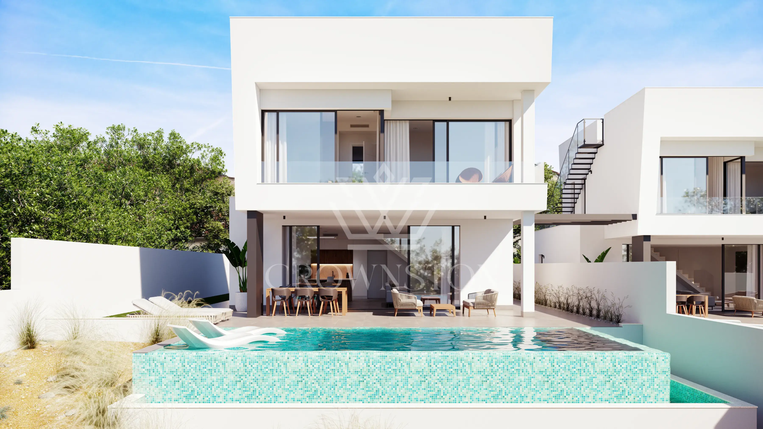 Crownston presenta este exclusivo chalet de obra nueva con piscina privada, ubicado en una tranquila zona residencial rodeada de naturaleza, a pocos minutos de las playas del sur de Alicante y el norte de Murcia. Una propuesta ideal para quienes buscan un entorno soleado, seguro y conectado con el deporte y el bienestar durante todo el año.