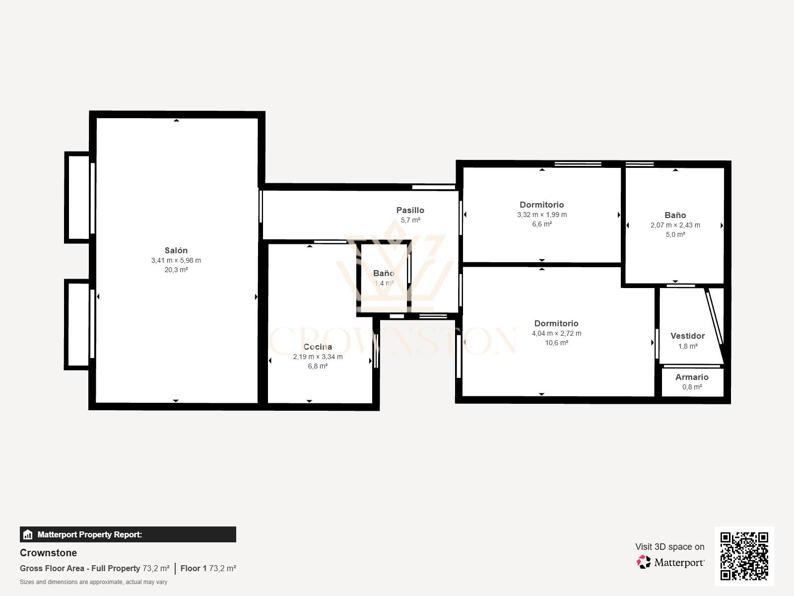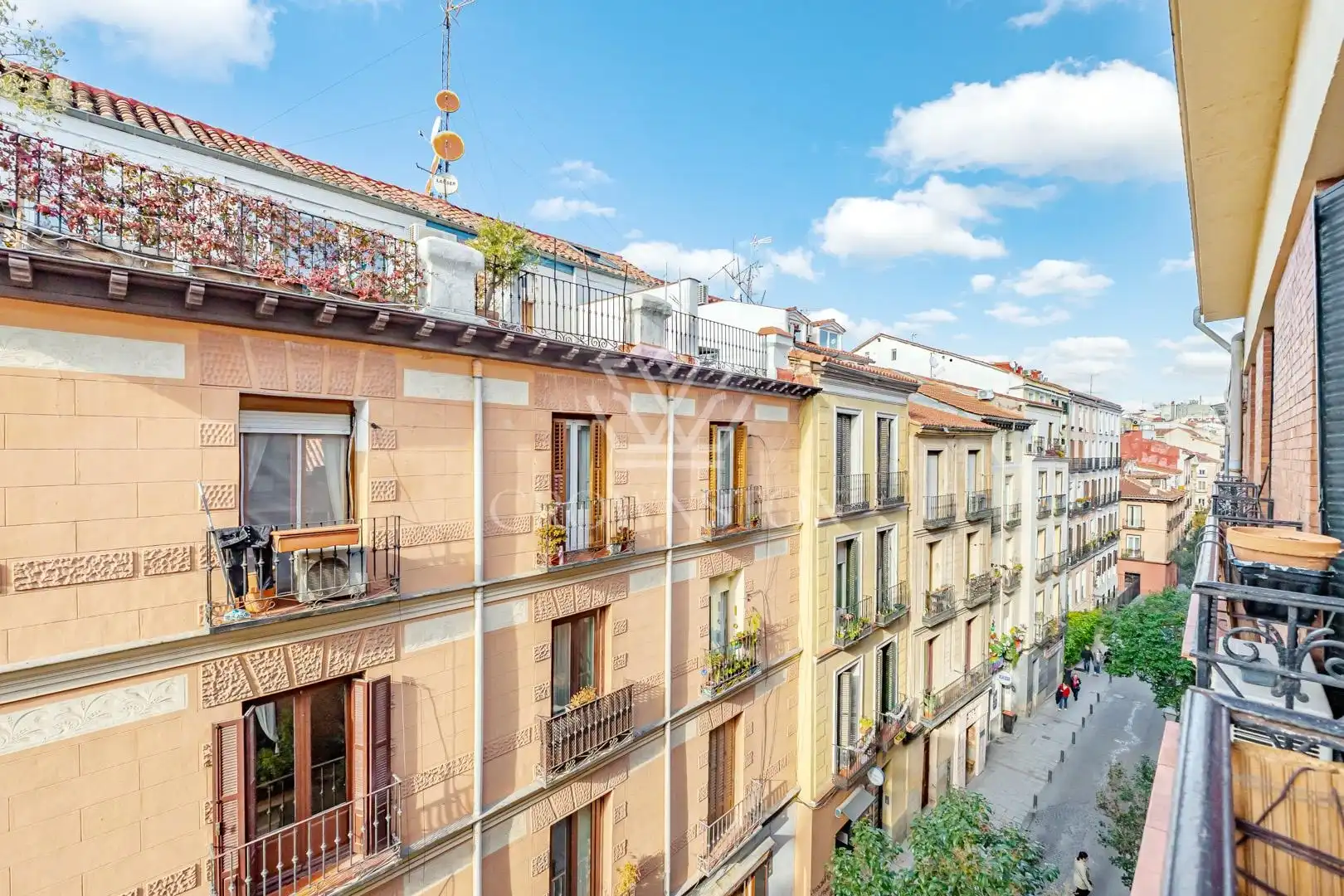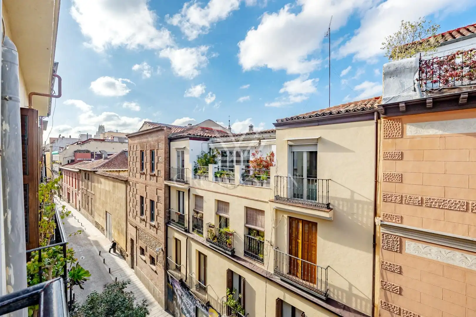 La propiedad dispone de dos dormitorios y dos baños, uno de ellos en suite, ofreciendo una distribución equilibrada y funcional. El salón-comedor, amplio y luminoso, se abre al exterior a través de dos balcones a la calle, que aportan luz natural y una agradable conexión con el entorno urbano.